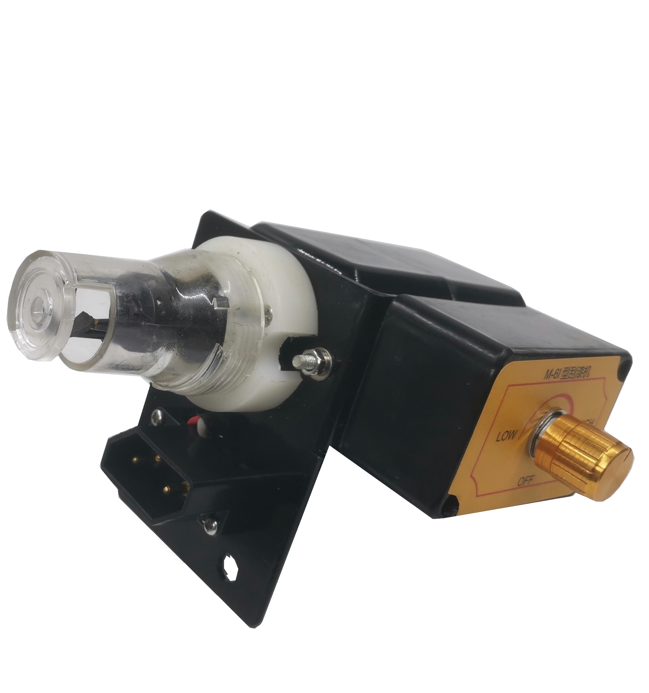 2、固定式电动刮漆器由电动力部件(单相和串激电机)和刮漆刀架及调速器为一体的二个部份组成。