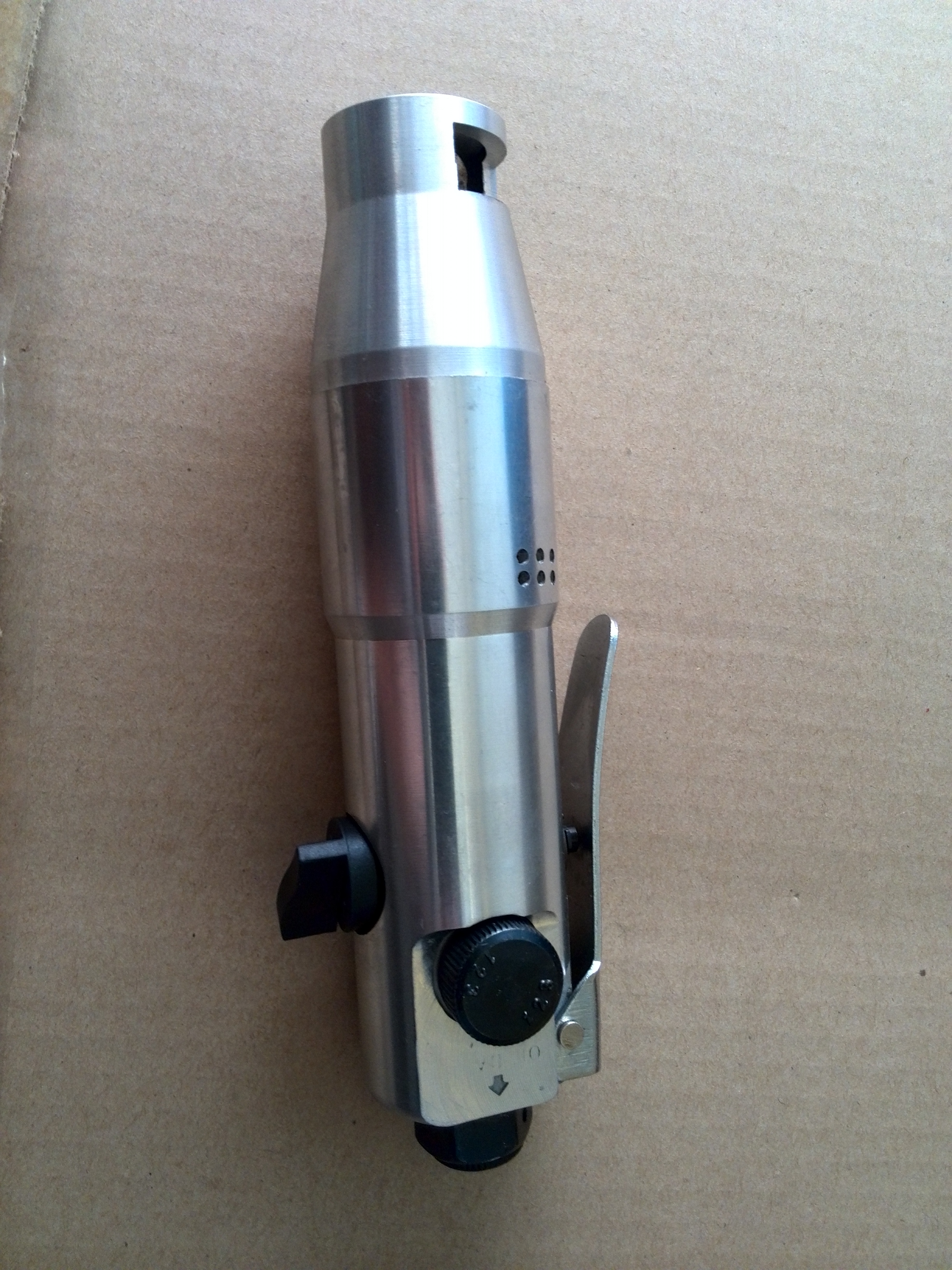 1、把需刮漆的漆包线头伸入刀架中央,按下开关,气动马达随即转动,